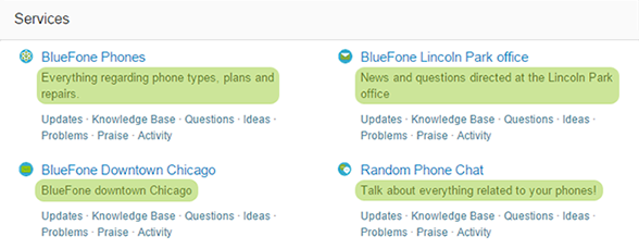 The description will show up under the link to your Space in the user portal. The below Space types are "Services":