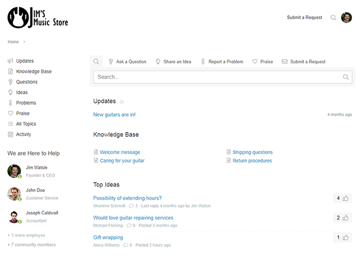 If for any reason you cannot find the information you are looking for, you can either submit a request, submit a post in the community or continue to browsing the Helprace User Portal.