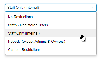 "No Restrictions" makes the space public, while "Staff & Registered Users" requires users to register to view it.