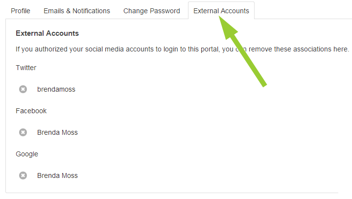 If you'd like to remove a social media account from Helprace, simply click the (x) button next to it.