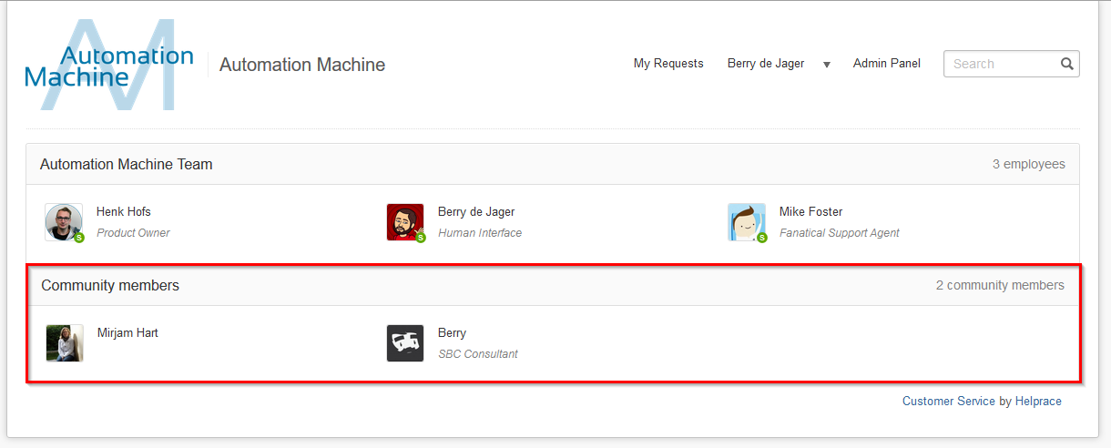 It would be very nice to have a option to have at the 'people' page (for instance see: http://support.helprace.com/people) a additional table showing "Community members".