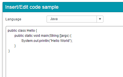 To edit an existing code snippet, click on it and then click the Insert/Edit code sample button.