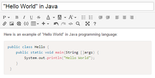 You can add code with the highlighted syntax using the WYSIWYG editor (that is, to your articles, topics, replies, macros, tickets, triggers, automations, etc). Your customers can also add code snippets when they're submitting a ticket or idea/question/problem.