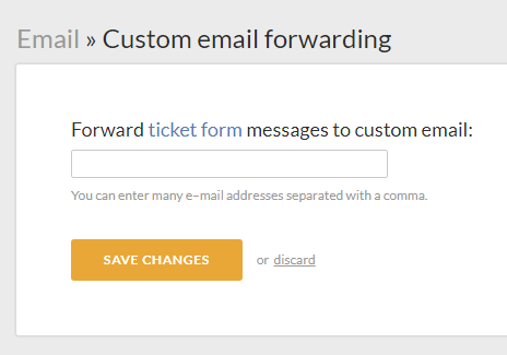 Specify emails where offline form and missed chat notifications will be sent. Insert your support email address here (e.g. go to Settings > Mailboxes in Helprace to see the list of your addresses).