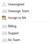 You can assign a ticket to a specific Team using saved commands (macros). Learn more about Macros