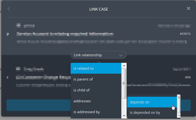 This was one of the most used functionalities we miss from our old tool that would be a huge help since sometimes we have dependent/depended on cases, cases that are already finished but we don't want to merge cause it had a different submitter, or we need to work one case before another and having that not just be a note would be great.