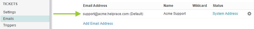 When you signed up for your account in Helprace, you've received your own email address that is associated with your Helprace account. The address includes your help desk subdomain. For example, if you signed up for a Helprace account with "acme" subdomain, your user portal is accessible via acme.helprace.com and your helpdesk's email address is support@acme.helprace.com. Whenever users send an email to support@acme.helprace.com it will appear in your Helprace admin panel in 'Tickets' section.